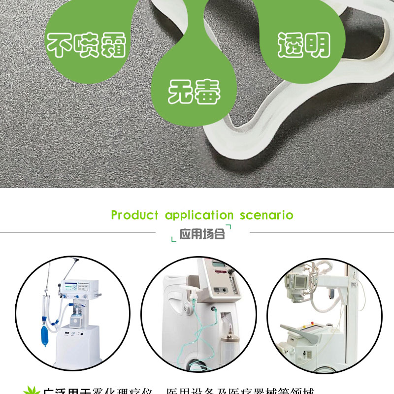 產品用途: 呼吸機、麻醉機、醫用設備、勞保防護等