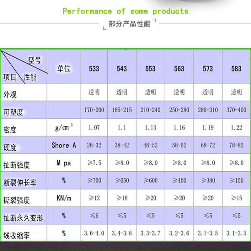 產品硬度: 常規邵氏硬度60度(硬度范圍30-80度)