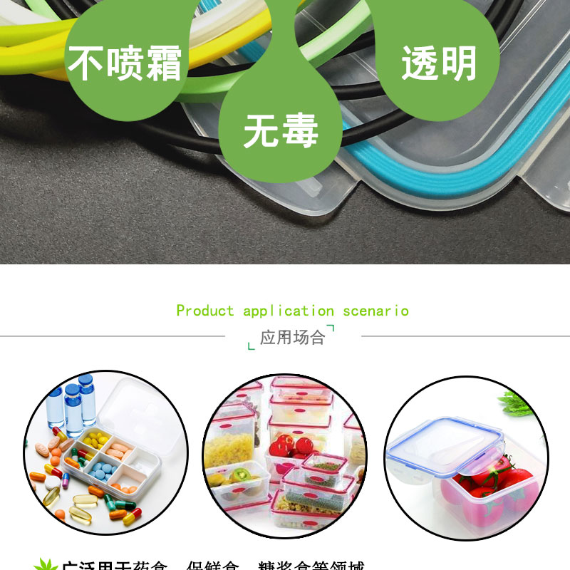 產品用途: 用于飯盒密封圈,保鮮盒密封圈,真空盒密封圈等